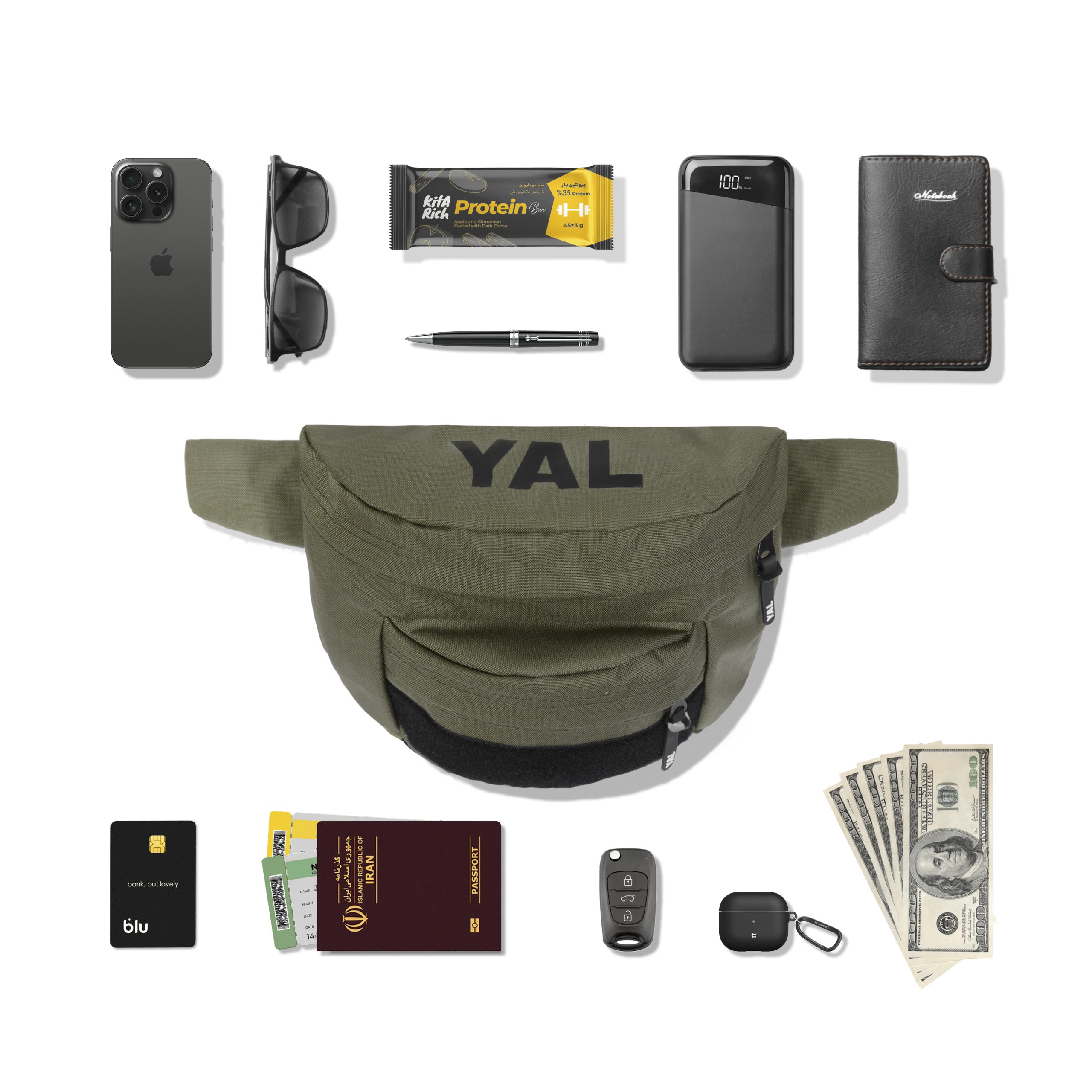 کیف کراس بادی(کمری یَل) سبک و جادار برای استفاده روزمره، سفر و … مناسب است. فضای اصلی این کیف به اندازه ای طراحی شده که وسایل روزمره شما مثل کیف پول، عینک آفتابی، کیف لوازم آرایشی، دسته کلیدو وسایل کوچک دیگری که نیاز به حمل اون در طول روز دارید به راحتی قرار گیرد. در فضای پایین کیف محلی برای چسباندن استیکر وجود دارد که میتوانید طبق سلیقه خود کیف رو استایل کنید. برای این کیف یک جیب مخفی جهت قراردادن پول و یا مدارک مهم هنگام سفر طراحی شده است. بند کمری این کیف قابل تنظیم است.